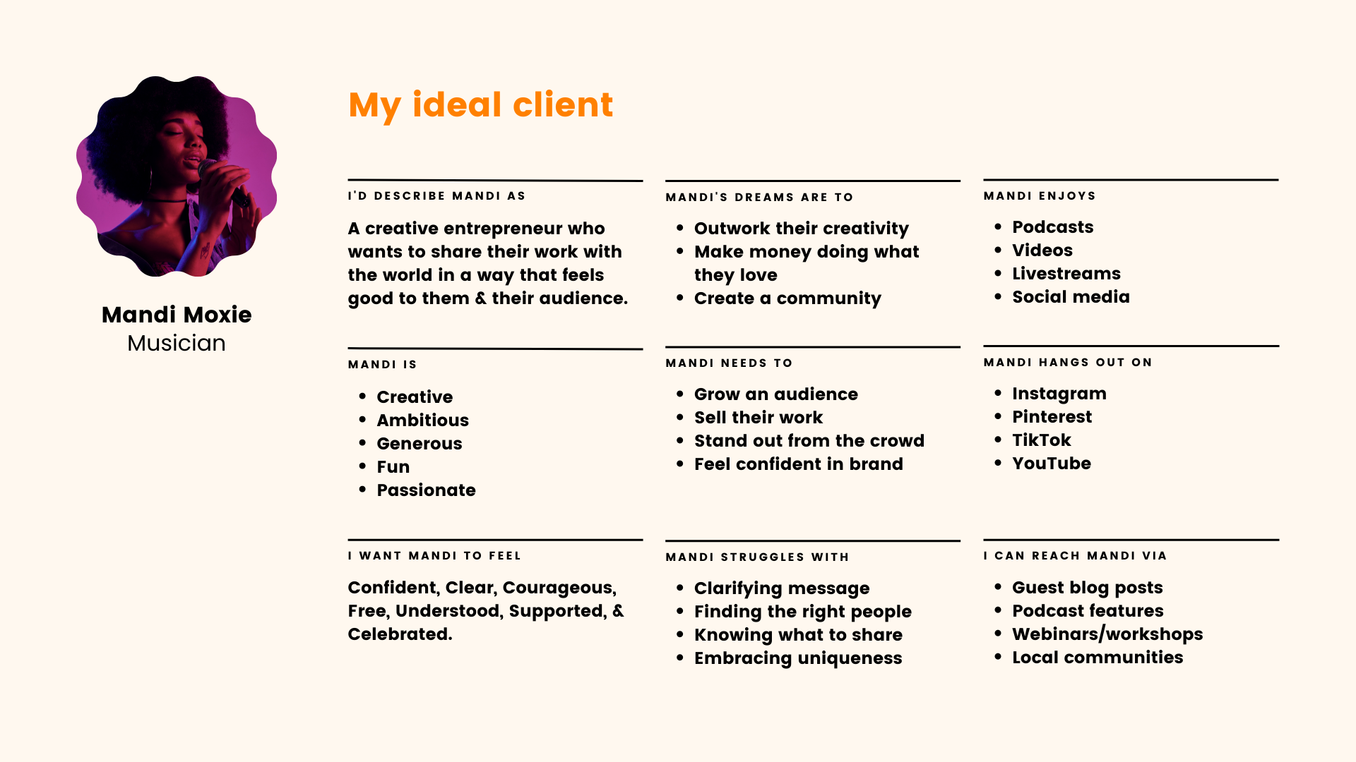 Delve deep into your dreamiest clients and fave customers to figure out who lights you up & decide who you wanna work with or create for.